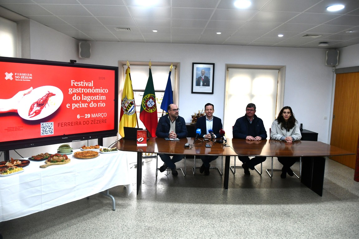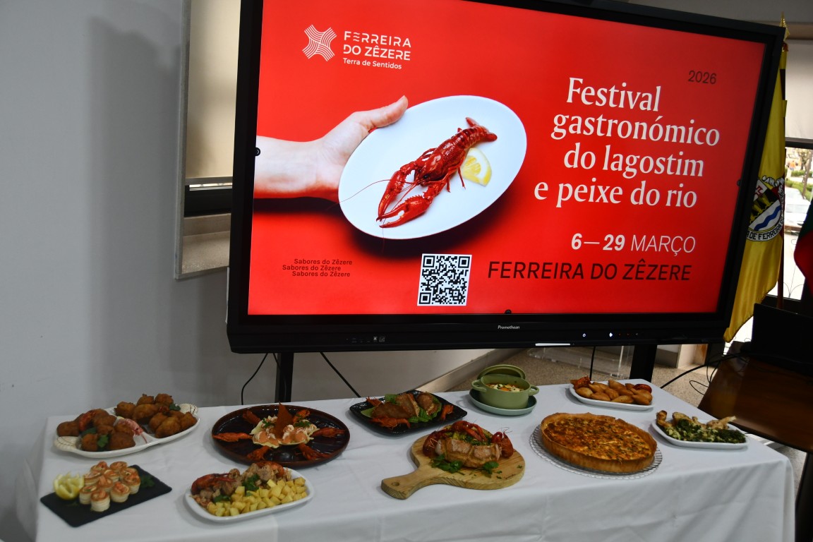 O Município de Ferreira do Zêzere promoveu no edifício dos Paços do Concelho, a conferência de imprensa de apresentação do Festival Gastronómico do Lagostim e Peixe do Rio, que decorrerá de 6 a 29 de março de 2026, nos cafés e restaurantes aderentes do concelho.